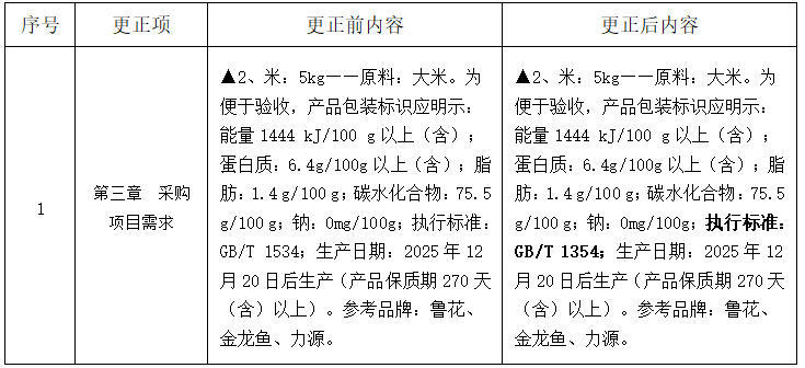 更正事项:采购需求