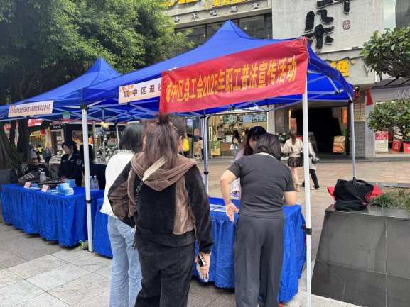 活动当天,城中区总工会工作人员和志愿者深入核心商圈五星步行街等职工聚集地开展普法宣传。活动现场设置了多个宣传点,通过悬挂横幅、摆放展板等方式,吸引众多职工前来参与。工作人员热情地为职工讲解法律法规知识,内容涵盖劳动法、劳动合同法、工会法等与职工切身利益相关的法律法规,帮助职工了解自身权益和义务,引导职工在工作中依法维护自身合法权益。活动现场共发放法律相关宣传手册300余份。
