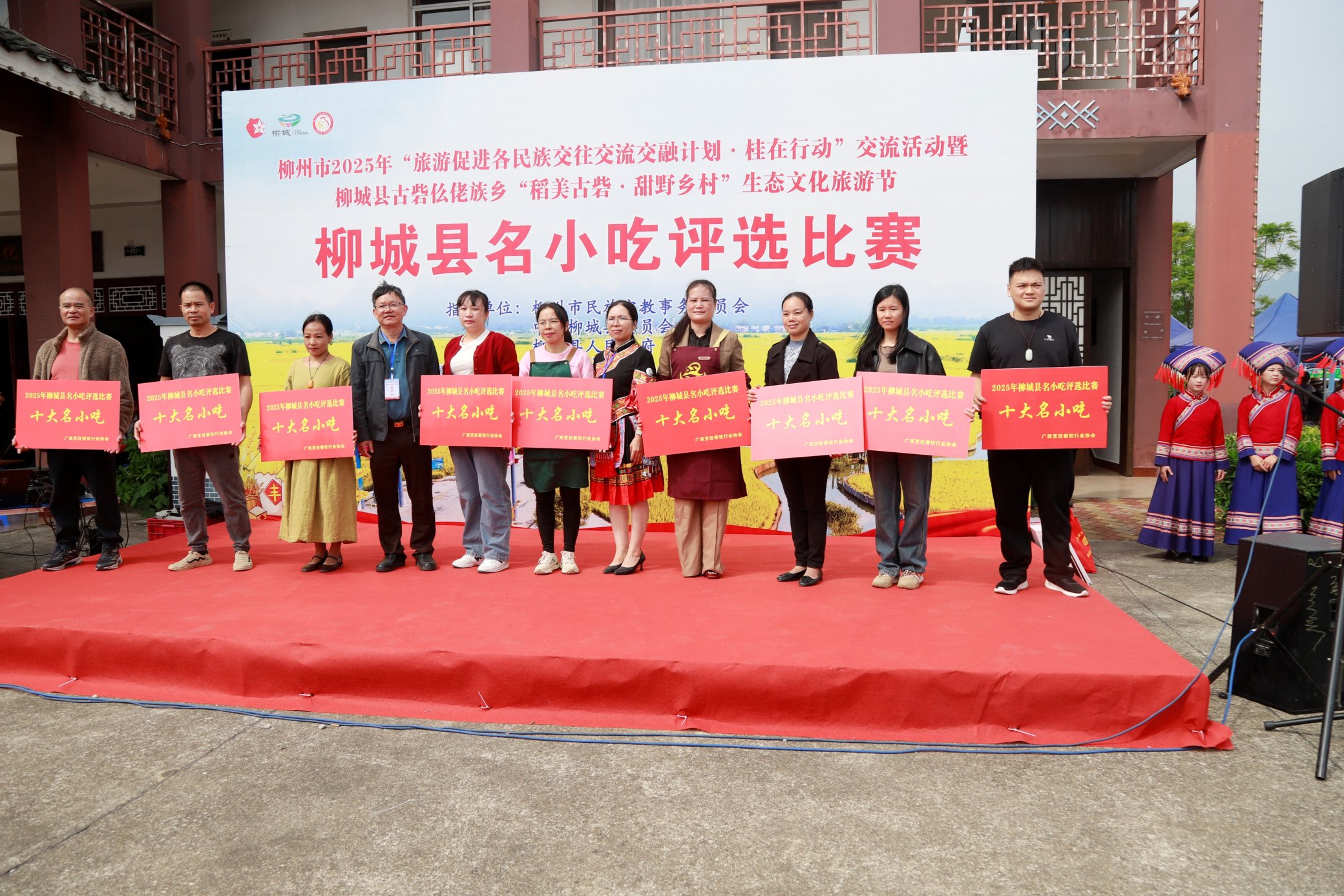 10月25日上午,古砦仫佬族乡“稻花飘香”农业示范区稻浪翻滚、香气四溢,“寻味古邑·匠心有料——赏柳城风光,品柳城美食”主题活动在此拉开帷幕,备受关注的“2025年柳城县名小吃评选大赛”同步举行颁奖典礼。本次大赛由柳州市民族宗教事务委员会、中共柳城县委员会、柳城县人民政府指导,中共柳城县委统战部、柳城县总工会、古砦仫佬族乡人民政府联合主办,广西烹饪餐饮行业协会专业评审,以美食为桥展现柳城民俗风情与匠心传承。