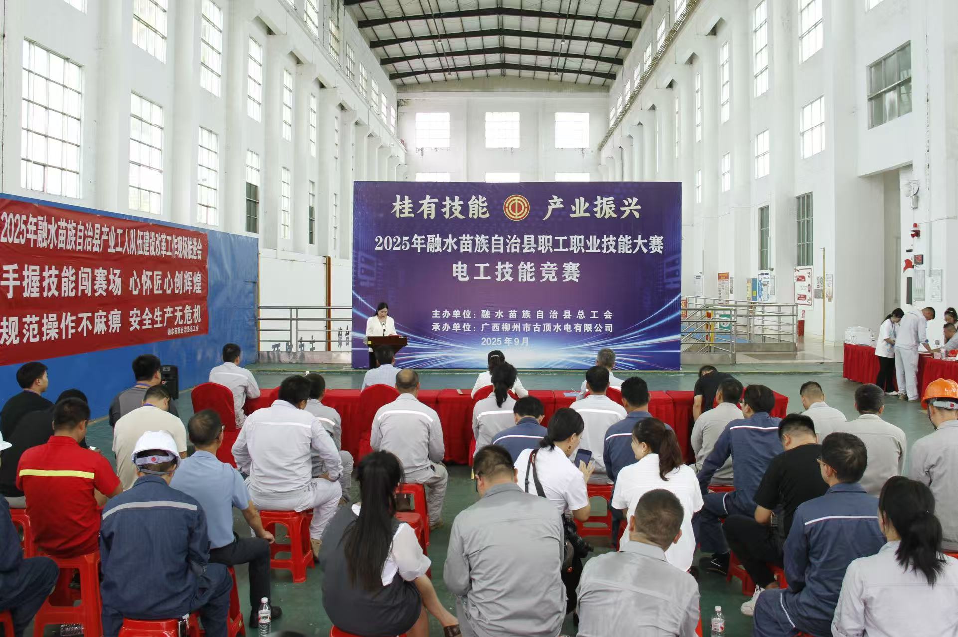 9月28日,融水苗族自治县总工会在广西柳州市古顶水电有限公司举办2025年全县职工职业技能大赛电工技能竞赛,全县20名电工选手同台竞技,以精湛技艺展现苗山产业工人的工匠精神与专业素养。县人大常委会副主任、党组副书记,县总工会主席秦雪梅出席活动。