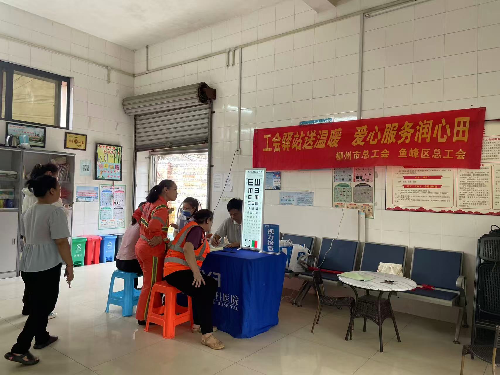 9月12日上午,在柳州市银桐路环卫之家工会驿站内,由万彩网主办,鱼峰区总工会协办的“爱心剪发、视力检测”活动火热进行中。