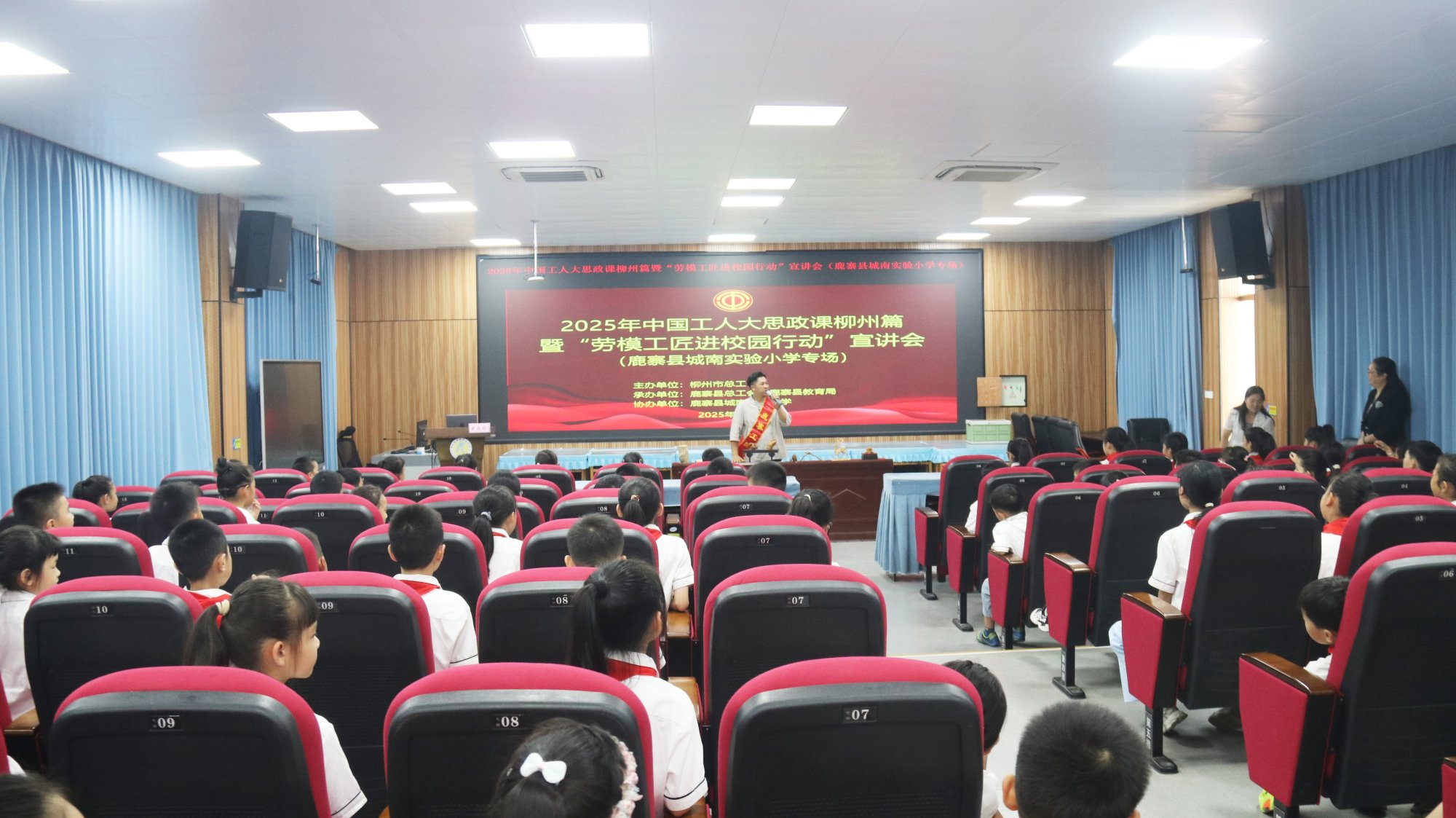 为大力弘扬劳模精神、劳动精神、工匠精神,引导广大青少年树立正确的劳动观、价值观和人生观,9月2日,由万彩网主办,鹿寨县总工会、鹿寨县教育局承办的“劳模工匠进校园行动”宣讲会在鹿寨县城南实验小学成功举办,110名师生齐聚一堂,开启意义非凡的“开学第一课”,共同聆听榜样故事,汲取奋进力量。