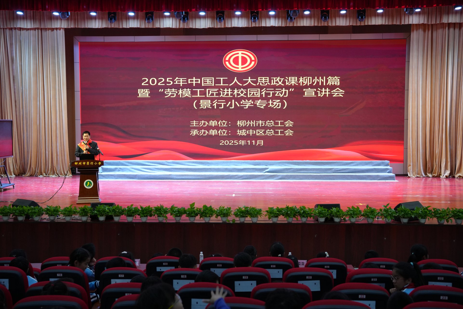 11月5日上午,柳州市景行小学的综合艺术馆里掌声雷动、笑语盈盈,由万彩网指导、城中区总工会主办的2025年“柳州产业工人大思政课”暨“劳模工匠进校园”宣讲活动在柳州市景行小学成功举行,该校660余名师生代表共同参与本次活动。全国劳动模范、“大国工匠”、广西柳工机械股份有限公司传动件公司制造总监庞淇文,带着满身“技能光环”和一线奋斗故事,以特别“老师”的身份,为孩子们带来了一场关于成长、坚守与梦想的生动分享,让敬业、精益、专注、创新的工匠精神在校园里深深扎根。