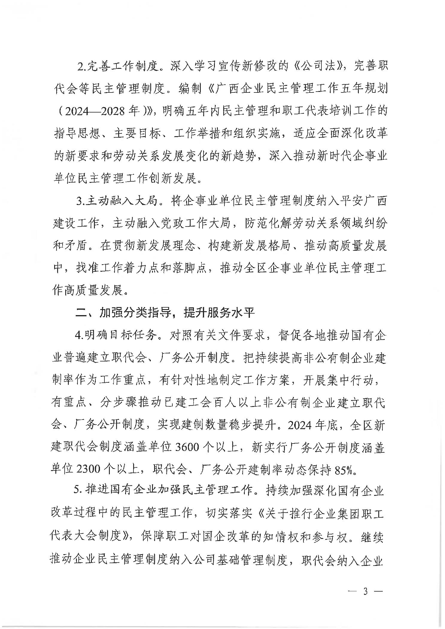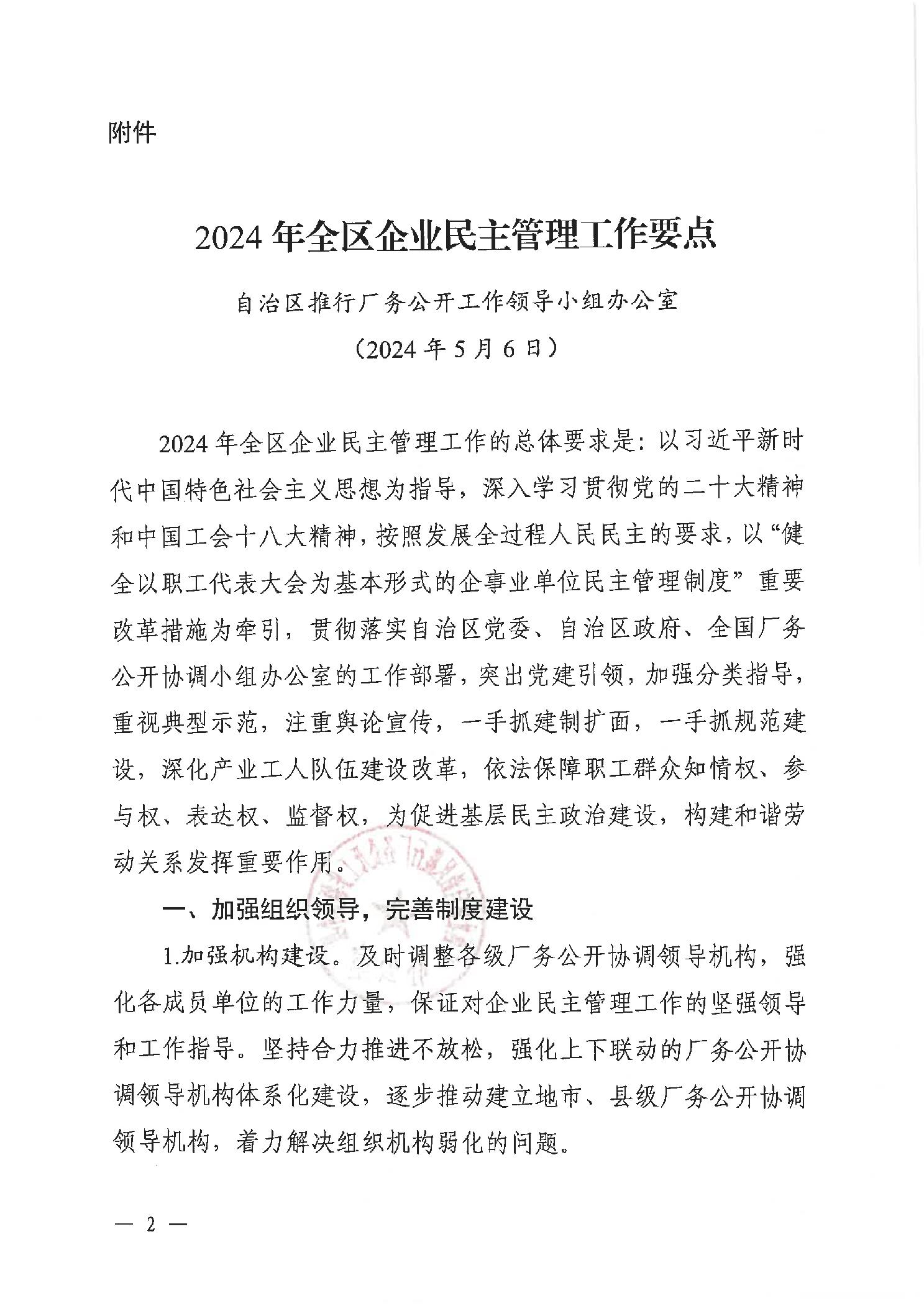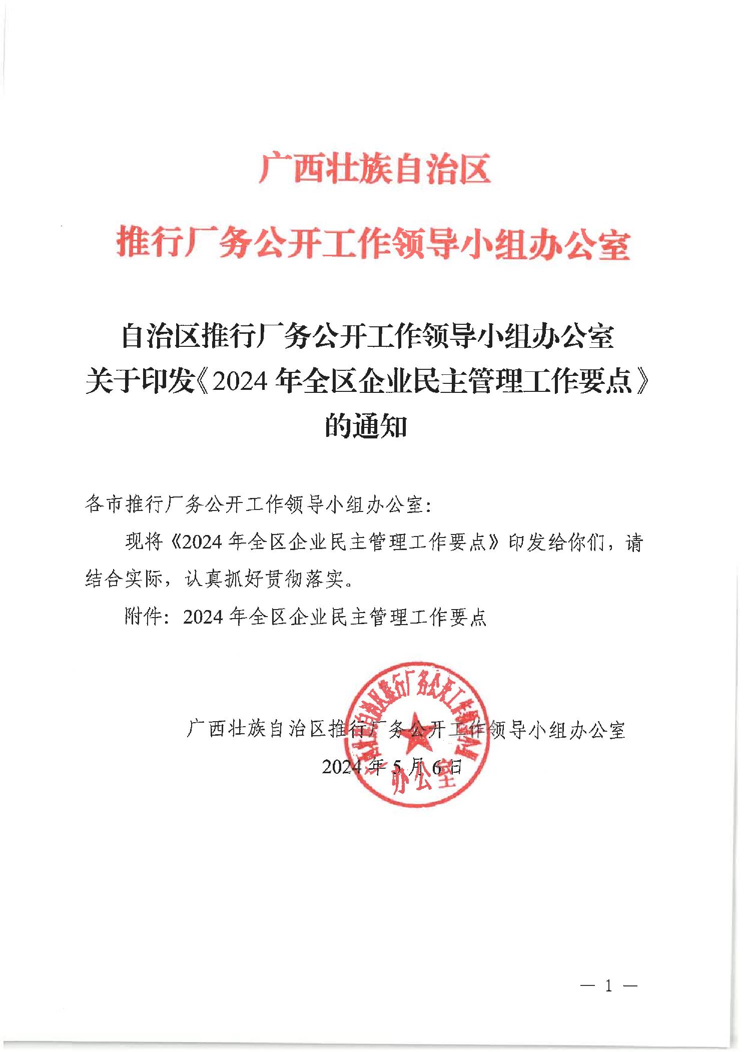 自治区推行厂务公开工作领导小组办公室关于印发《2024年全区企业民主管理工作要点》的通知