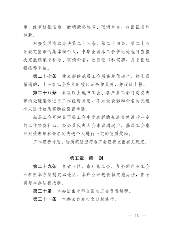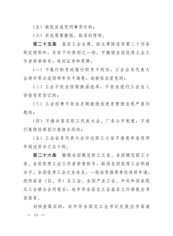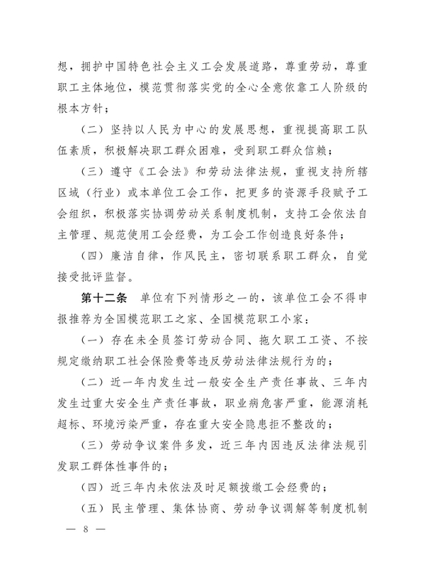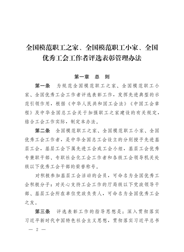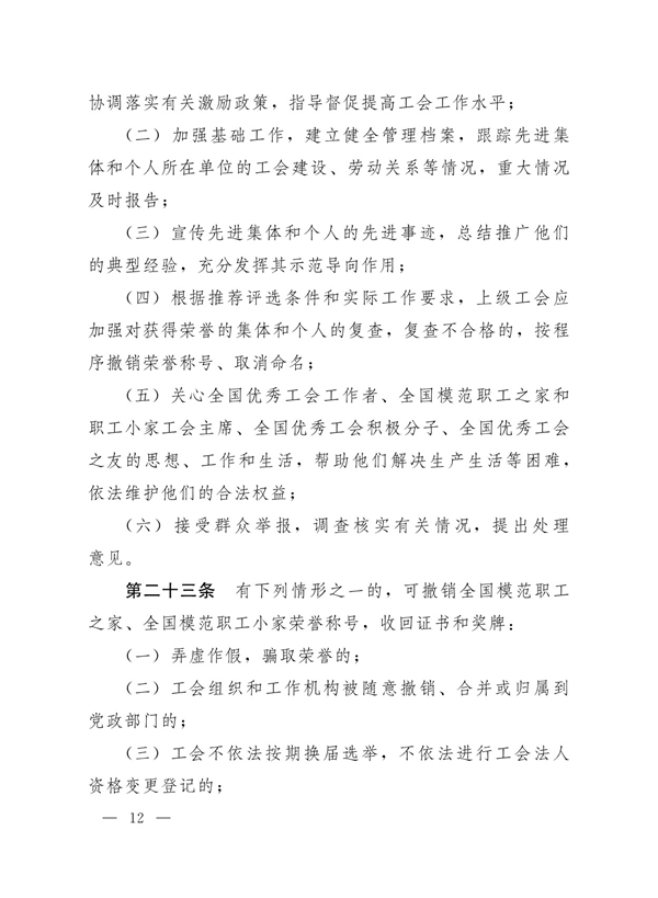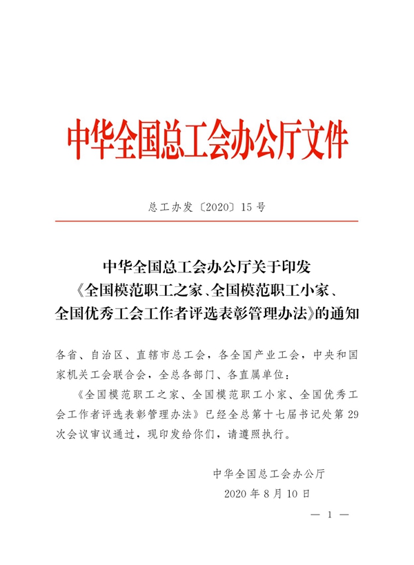 中华全国总工会办公厅关于印发《全国模范职工之家、全国模范职工小家、全国优秀工会工作者评选表彰管理办法》的通知