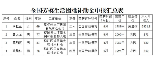 关于对2025年全国劳模申请生活困难补助金和特殊困难帮扶金名单的公示